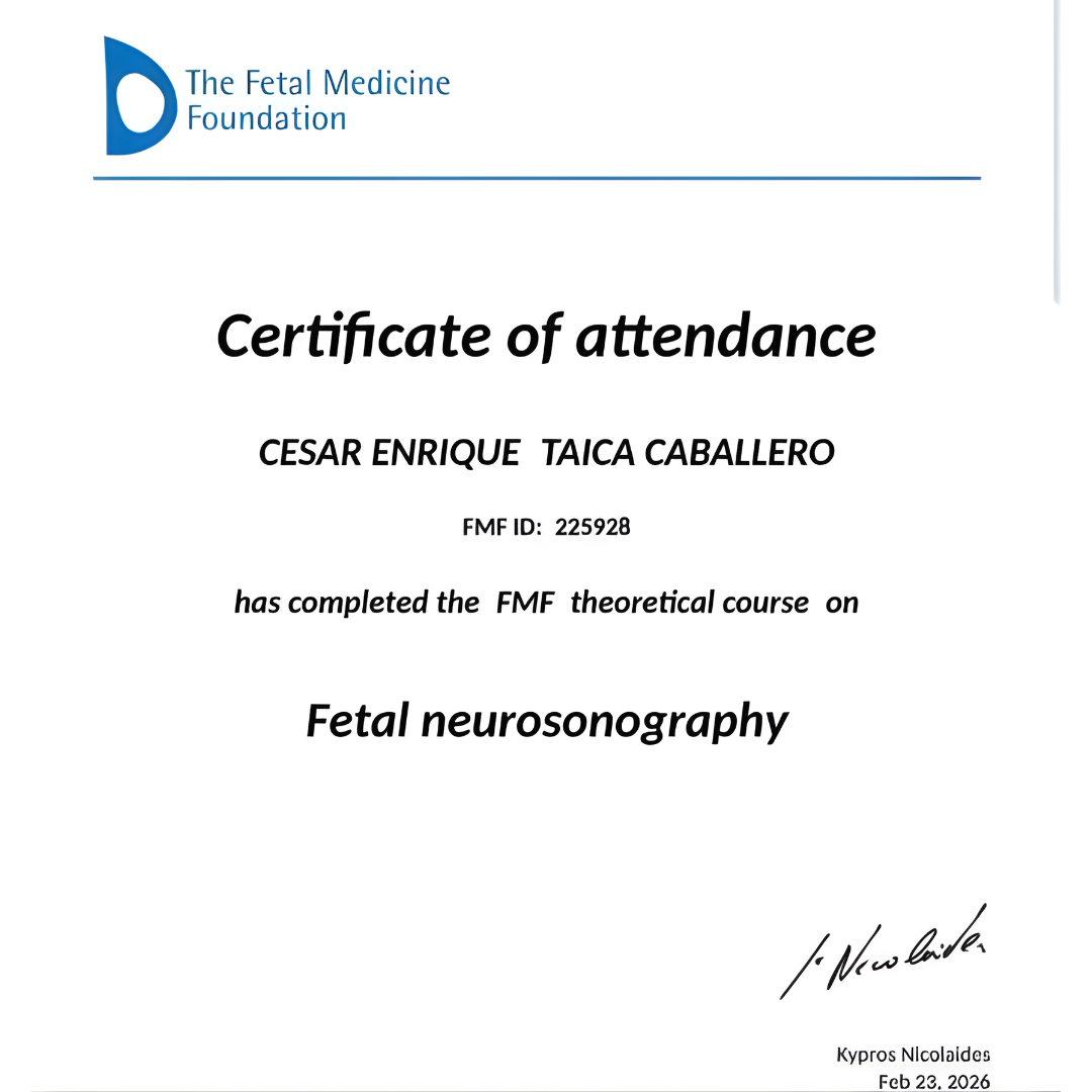 Certificación internacional de la Fetal Medicine Foundation en Neurosonografía Fetal, avalada por el Dr. Kypros Nicolaides.
